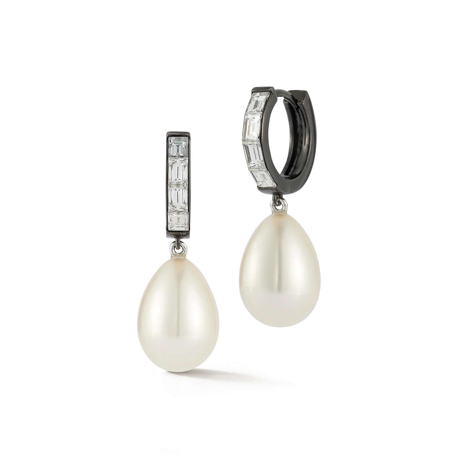Prive Pearl Blackened Diamond Baguette Huggies