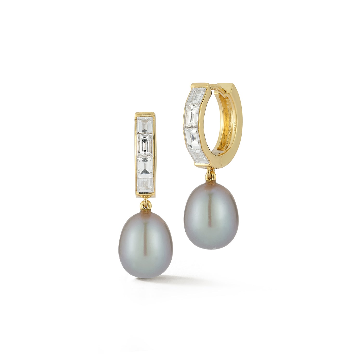 Prive Pearl and Diamond Baguette Huggies